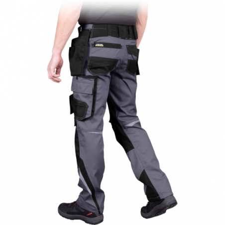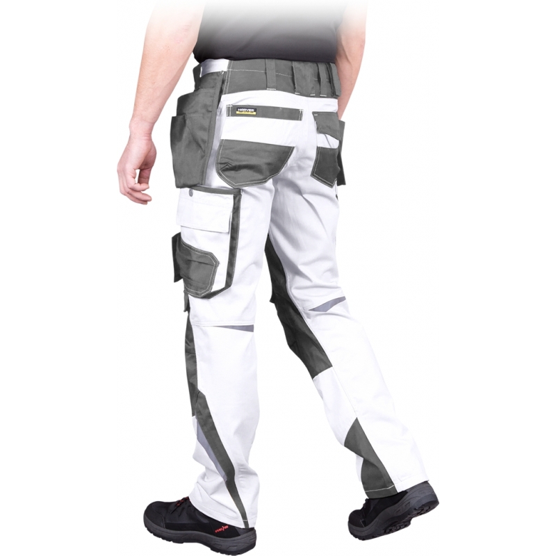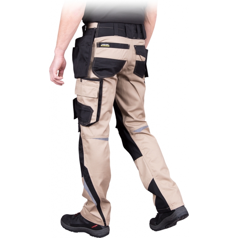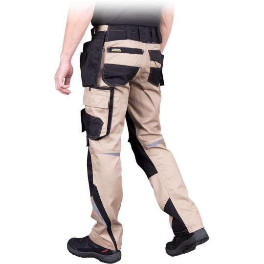 Spodnie ochronne do pasa HARVER. - 65% poliester, 35% bawełna - gramatura 300 g/m2 - zapinane na guzik i zamek błyskawiczny - cztery kieszenie po bokach, w tym dwie doszywane doskonałe do przechowywania narzędzi - dwie kieszenie z tyłu, w tym jedna zapinana na rzep - kieszenie na nogawkach, w tym na telefon komórkowy - końcówka do przypięcia kluczy - na kolanach kieszenie na wkładki nakolannikowe KING BEE zapinane na rzep - odblaskowe elementy zapewniają lepszą widoczność - „S” shape - profilowane nogawki zapewniają lepsze dopasowanie się do sylwetki użytkownika - testowane na zawartość szkodliwych dla zdrowia substancji zgodnie ze standardami OEKO-TEX® Standard 100 - spełniają wymagania normy EN ISO 13688