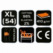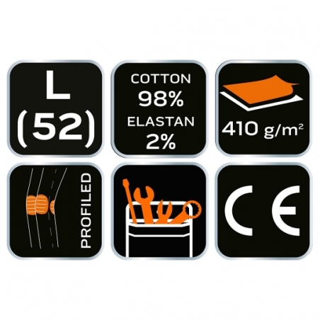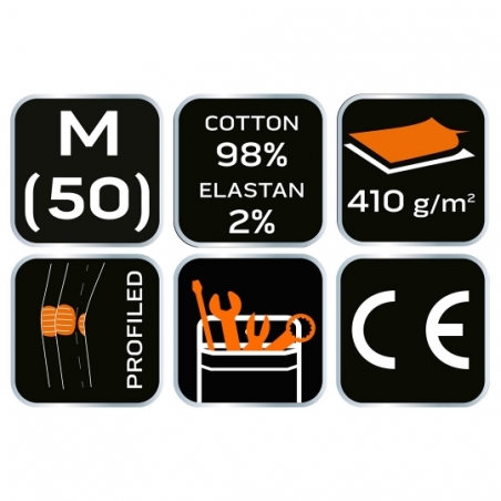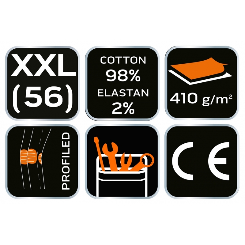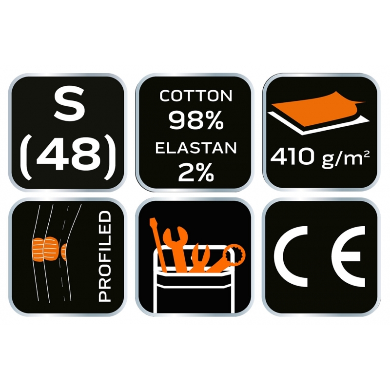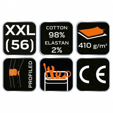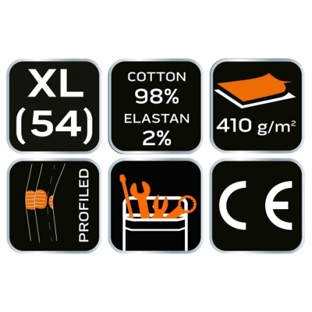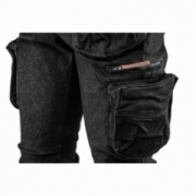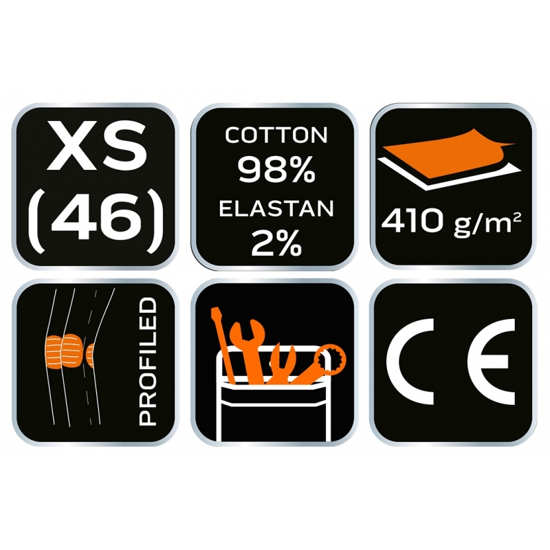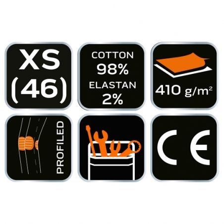 Spodnie robocze 5-kieszeniowe DENIM, czarne, rozmiar XS, 98% bawełna, 2% elastan, dodatek elastanu zapewnia lepsze dopasowanie i większy komfort noszenia, wielofunkcyjne i pojemne kieszenie, w kroku i pod kolanem panel podnoszący komfort użytkowania, profilowane kolano, dodatkowa kieszeń na dole nogawki, skórzane wszywki z logo, wewnętrzna wszywka imienna, unikalny projekt własny, certyfikat CE, zgodność z normą EN ISO 13688:2013
