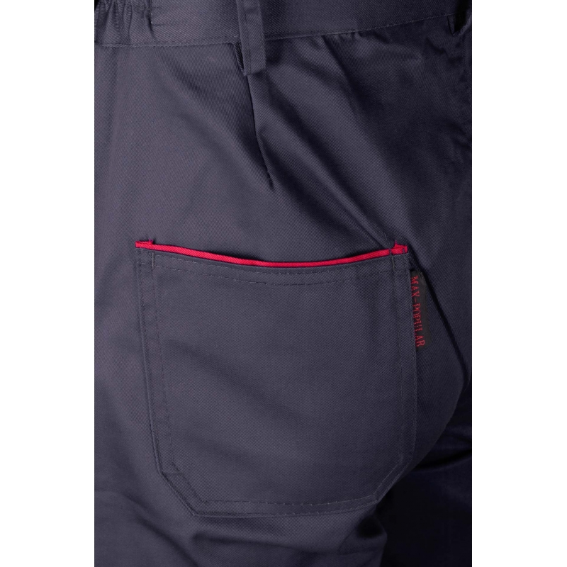Spodnie Max‑Popular wykonane są z wysokiej jakości materiału, który zachowuje stabilność rozmiarów i kolorów nawet po wielokrotnym praniu. Konstrukcja oparta na podwójnych szwach oraz mocnej nici zapewnia trwałość i odporność na uszkodzenia.