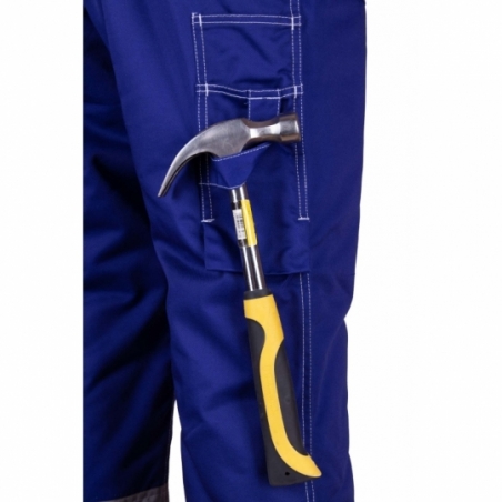 .Budowa/szycie: podwójne szwy, szyte widoczną, mocną nicią, szlufka na młotek, rozporek zapinany na suwak, duża ilość ryglówek w miejscach szczególnie narażonych na rozprucie,