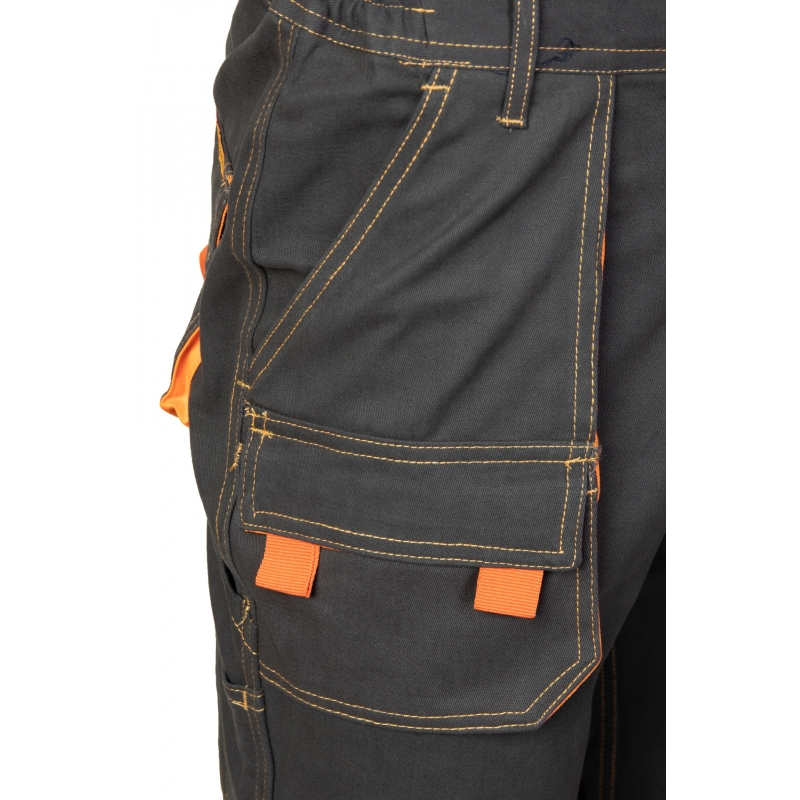 .Kieszenie: kieszeń na miarkę „metrówkę”, wzmocnione kieszenie boczne, dwie kieszenie w tylnej części spodni, ergonomiczna kieszeń na nakolanniki,