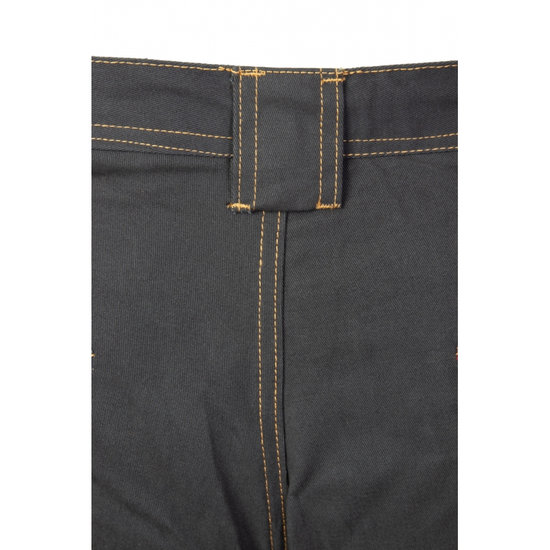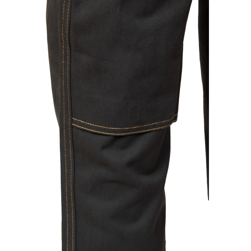 .Budowa/szycie: podwójne szwy, szyte widoczną, mocną nicią, duża ilość ryglówek w miejscach szczególnie narażonych na rozprucie, spodnie posiadają szlufki na pasek, szlufka na młotek, ergonomiczna kieszeń na nakolanniki,