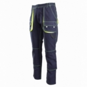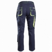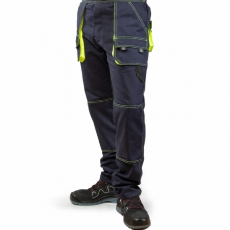 Model wyposażony jest w ergonomiczne kieszenie na nakolanniki wykonane z OXFORDU, wzmocnione kieszenie boczne oraz praktyczną kieszeń na miarkę. Regulacja obwodu w pasie odbywa się za pomocą gumki, a spodnie posiadają szlufki na pasek i szlufkę na młotek.