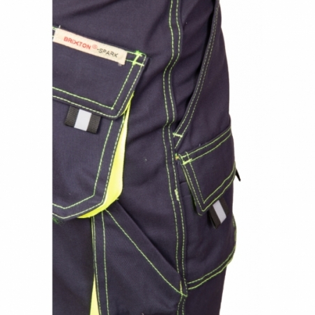 • Kieszenie: dwie tylne; wzmocnione kieszenie boczne; kieszeń na miarkę; ergonomiczna kieszeń na nakolanniki