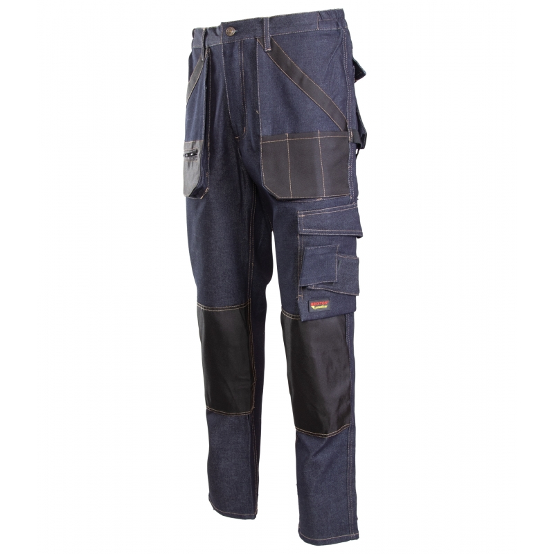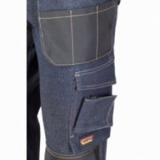 .Budowa/szycie: podwójne szwy, szyte widoczną, mocną nicią, wykonane z wysokiej jakości materiału, który zapewnia po wielokrotnym praniu stabilność kolorów i rozmiarów, duża ilość ryglówek w miejscach szczególnie narażonych na rozprucie, dodatkowe wzmocnienie na wysokości kolan, wstawki kolorystyczne z materiału OXFORD, rozporek zapinany na suwak,