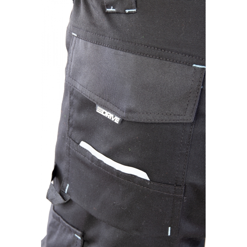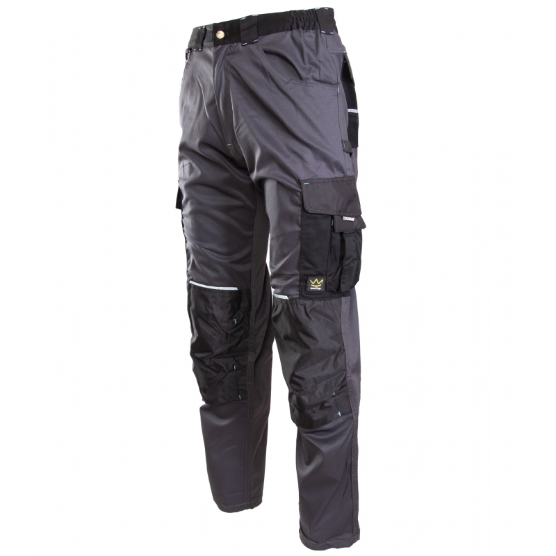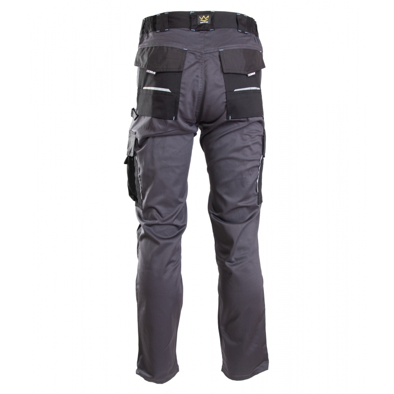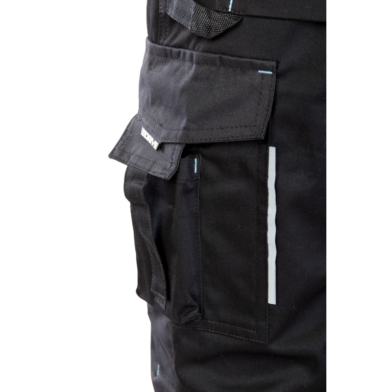 .Kieszenie: kieszeń na miarkę „metrówkę”, wzmocnione kieszenie boczne, kieszeń na komórkę, szlufka na młotek, kieszeń na dokumenty, kieszeń na długopisy, dwie kieszenie w tylnej części spodni, ergonomiczna kieszeń na nakolanniki wykonana z OXFORDU,