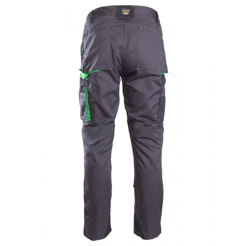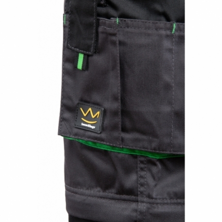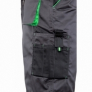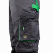• Kieszenie: dwie tylne; wzmocnione boczne; kieszeń na komórkę; kieszeń na dokumenty; kieszeń na miarkę; kieszeń na nakolanniki