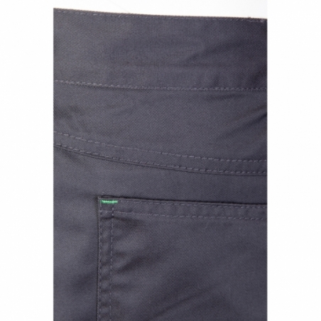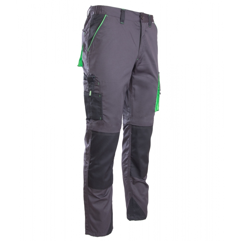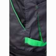 Model posiada wstawki i lamówki kolorystyczne oraz szlufki na pasek. Liczne kieszenie, w tym kieszeń na dokumenty, kieszeń na komórkę, kieszeń na miarkę oraz ergonomiczna kieszeń na nakolanniki, zwiększają funkcjonalność.
