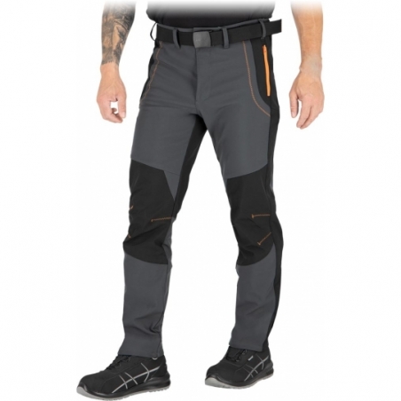RAW-POL SLENDER‑M to męskie spodnie ochronne typu slim wykonane z trójwarstwowego softshellu z 4‑kierunkowym streczem. Zapewniają ochronę przed wiatrem i deszczem, dużą swobodę ruchu oraz komfort dzięki elastycznemu pasowi i wyprofilowanym kolanom — idealne do pracy wymagającej mobilności i estetycznego, dopasowanego kroju.