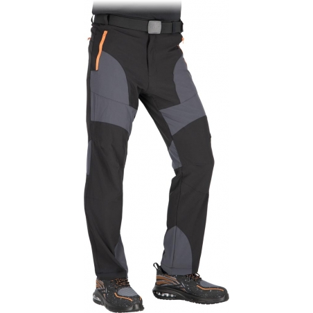 Spodnie ochronne do pasa, męskie. - tkanina: 4-kierunkowy stretch 94% poliester, 6% elastan - gramatura 140 g/m2 - zapinane na guzik oraz zamek błyskawiczny - dwie kieszenie boczne oraz dwie tylne zapinane na suwak - wyprofilowane kolana - gumka w pasie w bocznych partiach umożliwiająca lepsze dopasowanie