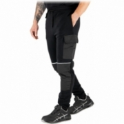 Spodnie ochronne dresowe do pasa BUZON, męskie. - materiał główny: dzianina 100% poliester o gramaturze 260 g/m2 - wstawki: tkanina o splocie canvas 80% poliester, 20% bawełna o gramaturze 260 g/m2 - dwie kieszenie boczne oraz jedna tylna zapinana na rzep - kieszeń na nogawce z przegródkami - kieszenie na wkładki nakolannikowe wkładane od góry z zapięciem na rzep - troczki oraz rozciągliwa gumka w pasie umożliwiająca lepsze dopasowanie - nogawki zakończone ściągaczem - odblaskowe elementy - idealne zarówno do pracy, jak i codziennego użytku