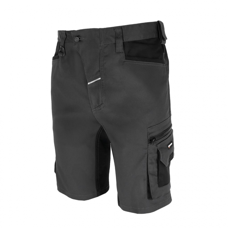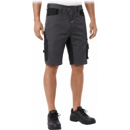 RAW-POL LH‑FACTOR‑TS to męskie spodnie robocze o krótkim kroju, wykonane z mieszanki poliestru, bawełny i elastanu z dodatkowymi wstawkami z 4‑kierunkowego stretchu oraz Cordury. Zapewniają wysoki komfort ruchu, trwałość i funkcjonalność dzięki licznym kieszeniom, elastycznym panelom i elementom odblaskowym. Idealne do pracy w logistyce, budownictwie, mechanice i wielu innych branżach technicznych.
