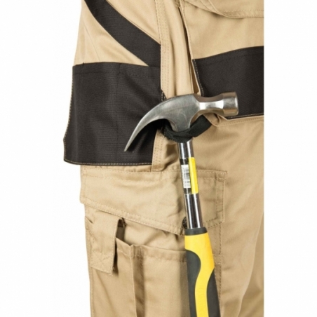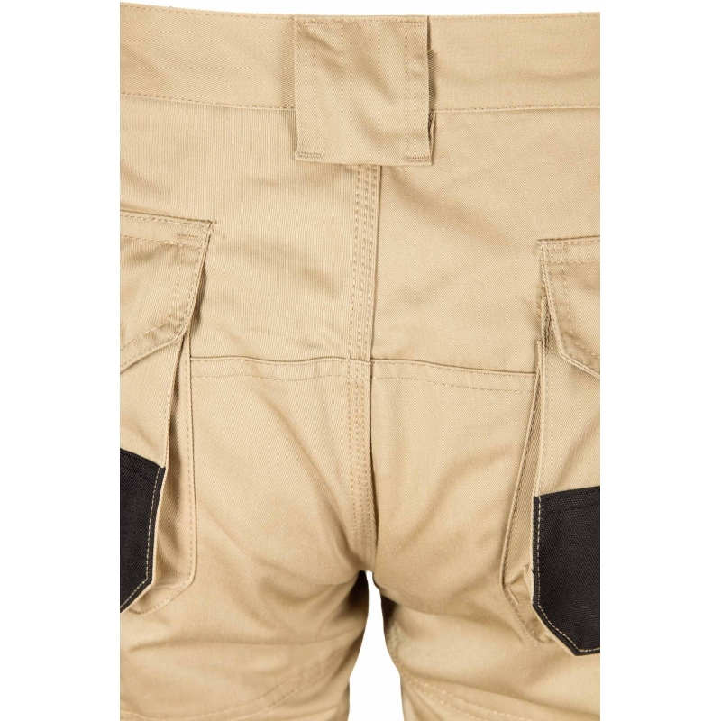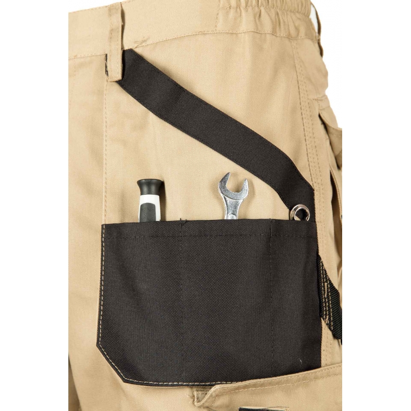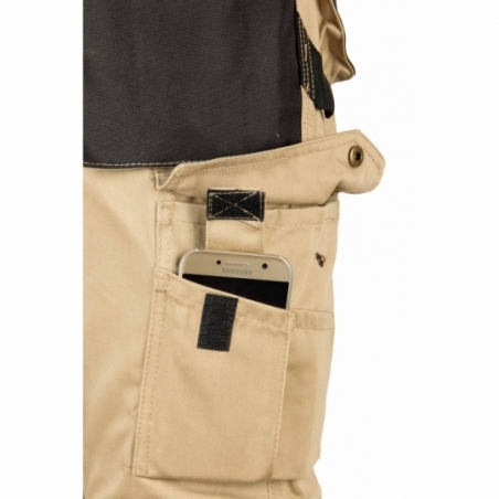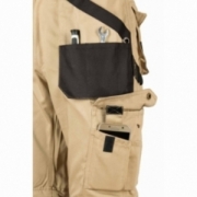 .Kieszenie: kieszeń na miarkę „metrówkę”, wzmocnione kieszenie boczne, kieszeń na komórkę, przestrzenne kieszenie, dwie kieszonki na długopisy, dwie kieszenie w tylnej części spodni, kieszeń na zamek
