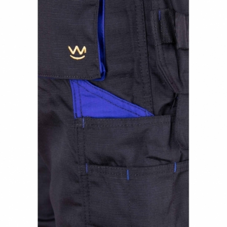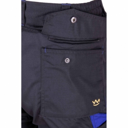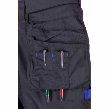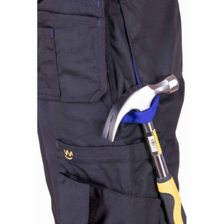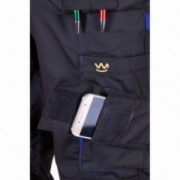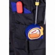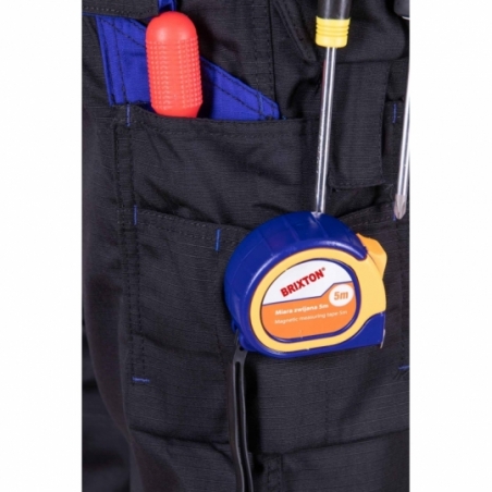 .Kieszenie: kieszeń na miarkę „metrówkę”, wzmocnione kieszenie zapinane na rzepy, kieszeń na komórkę, dwie kieszenie w tylnej części spodni, dwie kieszenie monterskie, dopinane na zamek