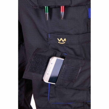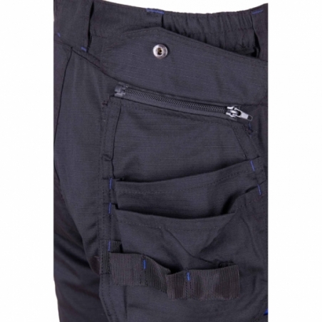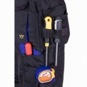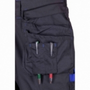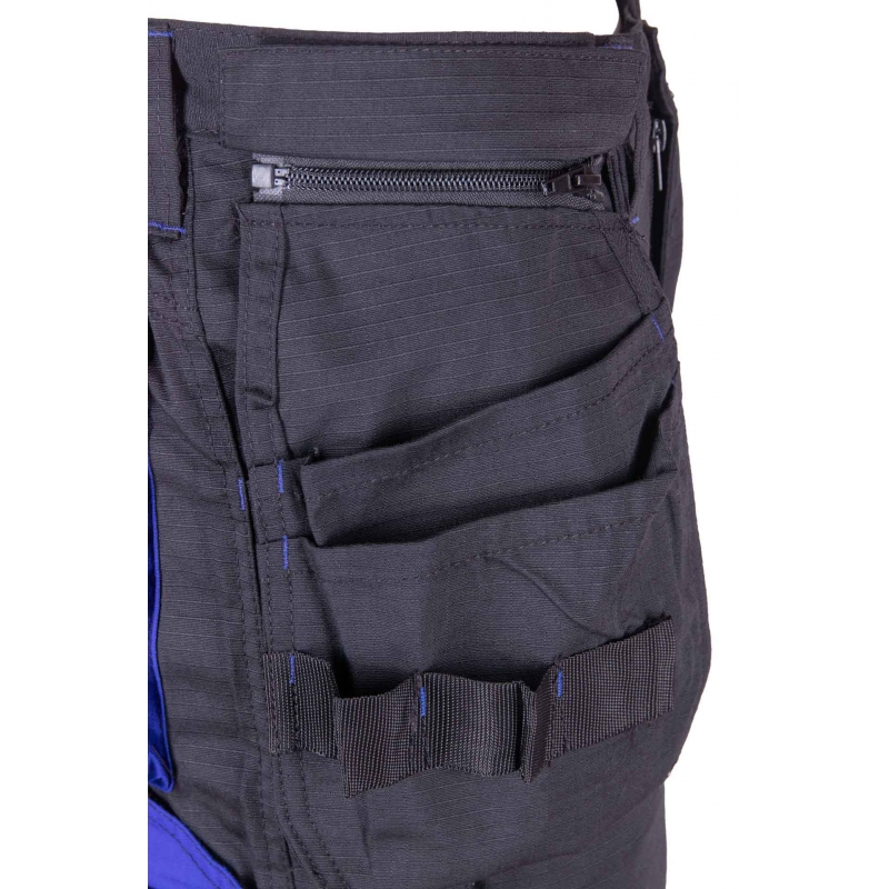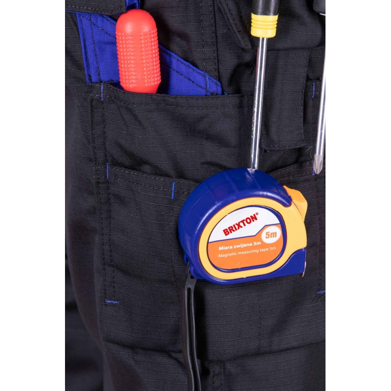 .Kieszenie: kieszeń na miarkę „metrówkę”, wzmocnione kieszenie zapinane na rzepy, kieszeń na komórkę, dwie kieszenie boczne, dwie kieszenie w tylnej części spodni, ergonomiczna kieszeń na nakolanniki, dwie kieszenie monterskie, dopinane na zamek