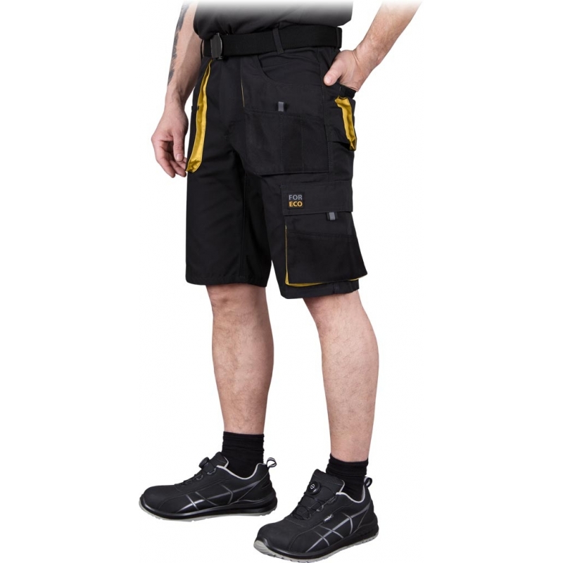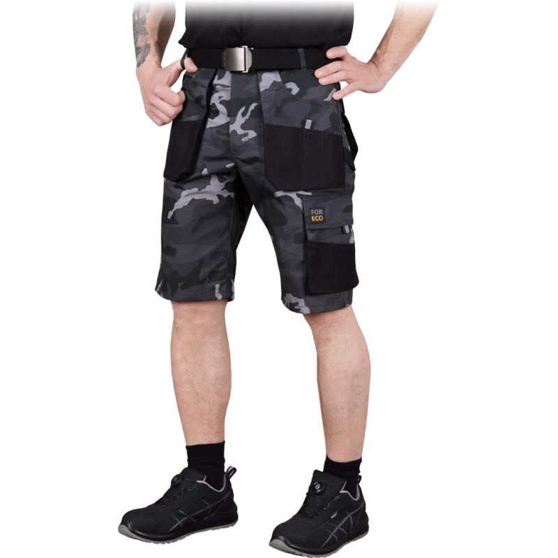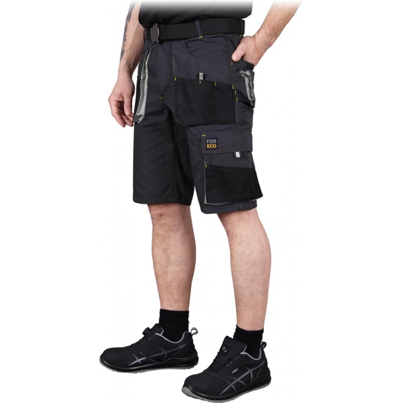Spodnie ochronne do pasa z krótkimi nogawkami, męskie. - materiał główny: tkanina 80% poliester, 20% bawełna o gramaturze 260 g/m2 - wstawki: tkanina 100% poliester Oxford 600D o gramaturze 200 g/m2 - zapinane na guzik i zamek błyskawiczny - ściągacze w bocznych partiach spodni w pasie zwiększają swobodę ruchów oraz umożliwiają lepsze dopasowanie - dwie kieszenie z tyłu na rzepy oraz dwie boczne - jedna kieszeń na nogawce na rzep na akcesoria oraz jedna boczna podłużna - końcówka do przypięcia kluczy - testowane na zawartość szkodliwych dla zdrowia substancji zgodnie ze standardami OEKO-TEX® Standard 100