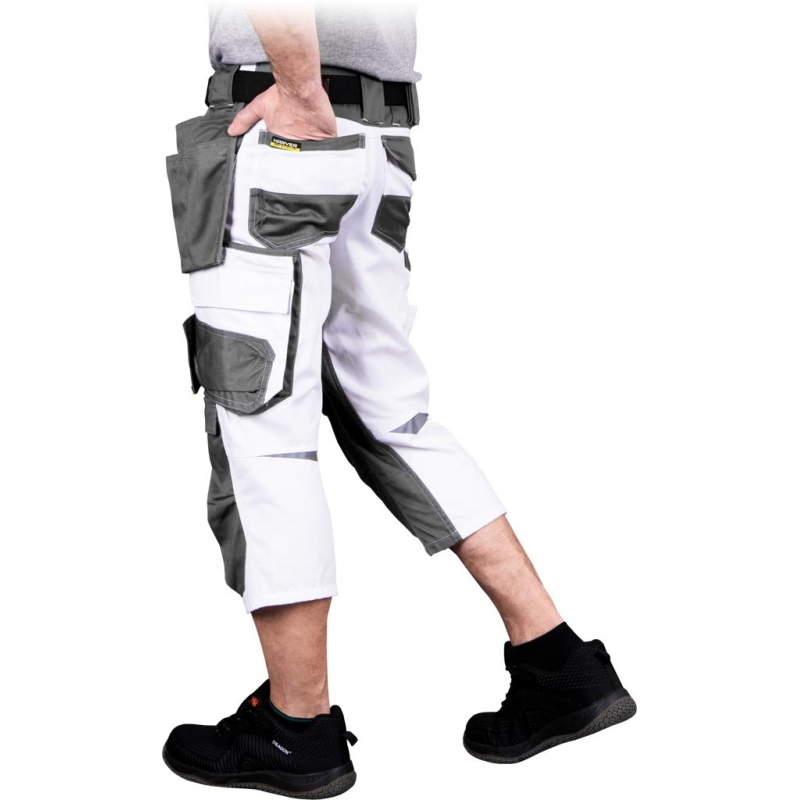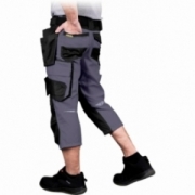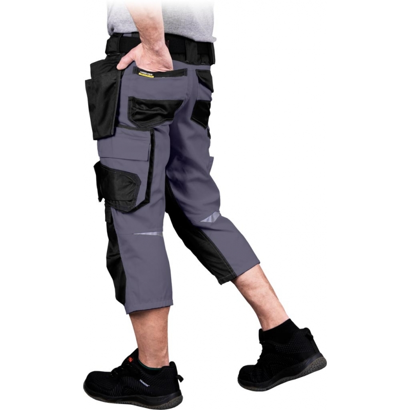 Spodnie ochronne do pasa HARVER z krótkimi nogawkami typu rybaczki. - tkanina: 65% poliester, 35% bawełna - gramatura 290 g/m2 - zapinane na guzik i zamek błyskawiczny - cztery kieszenie po bokach, w tym dwie doszywane doskonałe do przechowywania narzędzi - dwie kieszenie z tyłu, w tym jedna zapinana na rzep - kieszenie na nogawkach, w tym na telefon komórkowy - końcówka do przypięcia kluczy - na kolanach kieszenie na wkładki nakolannikowe zapinane na rzep - odblaskowe elementy zapewniają lepszą widoczność - testowane na zawartość szkodliwych dla zdrowia substancji zgodnie ze standardami OEKO-TEX® Standard 100