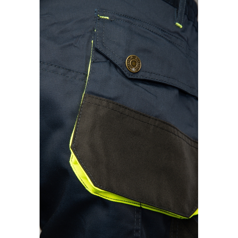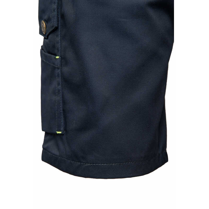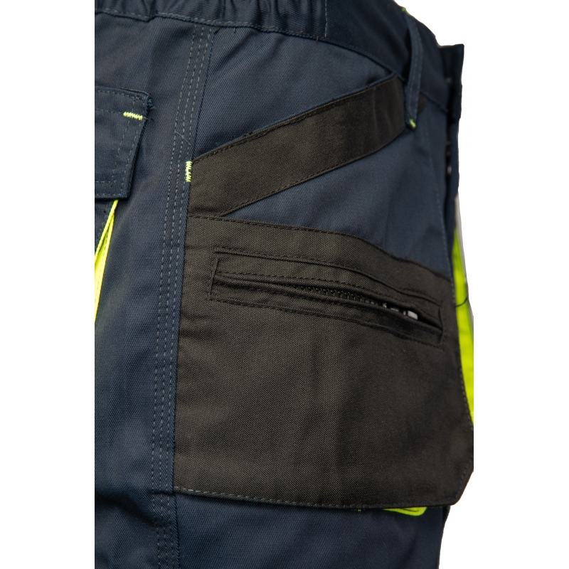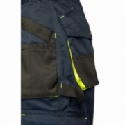 .Kieszenie: kieszeń na miarkę „metrówkę”, wzmocnione kieszenie boczne, kieszeń na komórkę, przestrzenne kieszenie, dwie kieszonki na długopisy, dwie kieszenie w tylnej części spodni, kieszeń na zamek