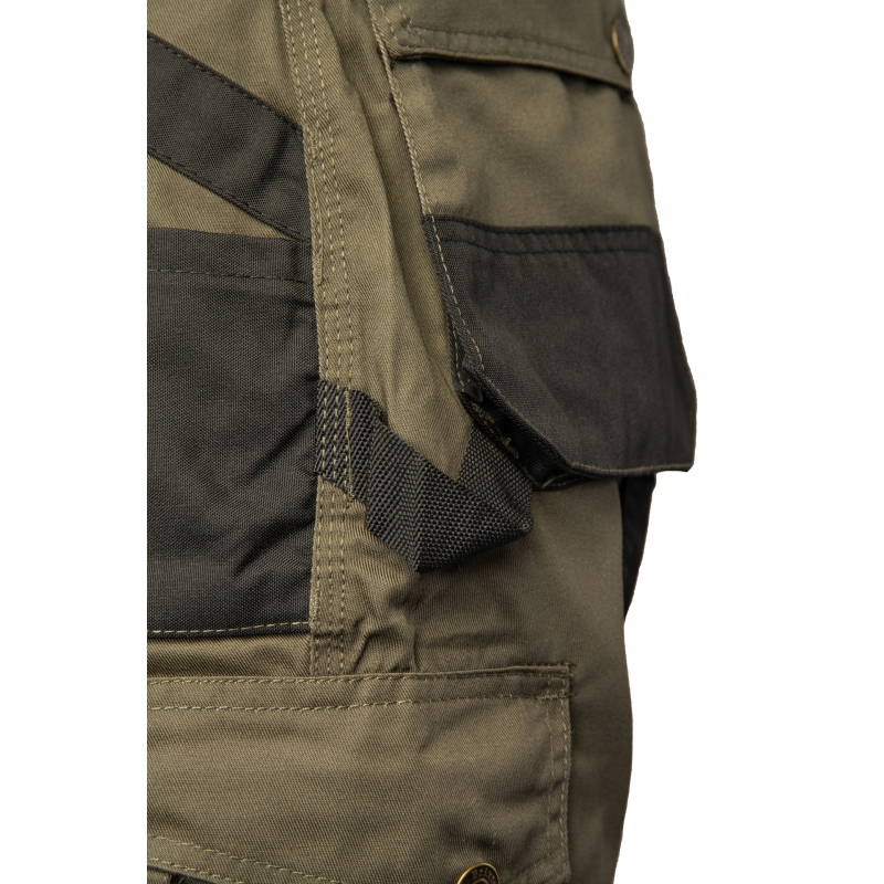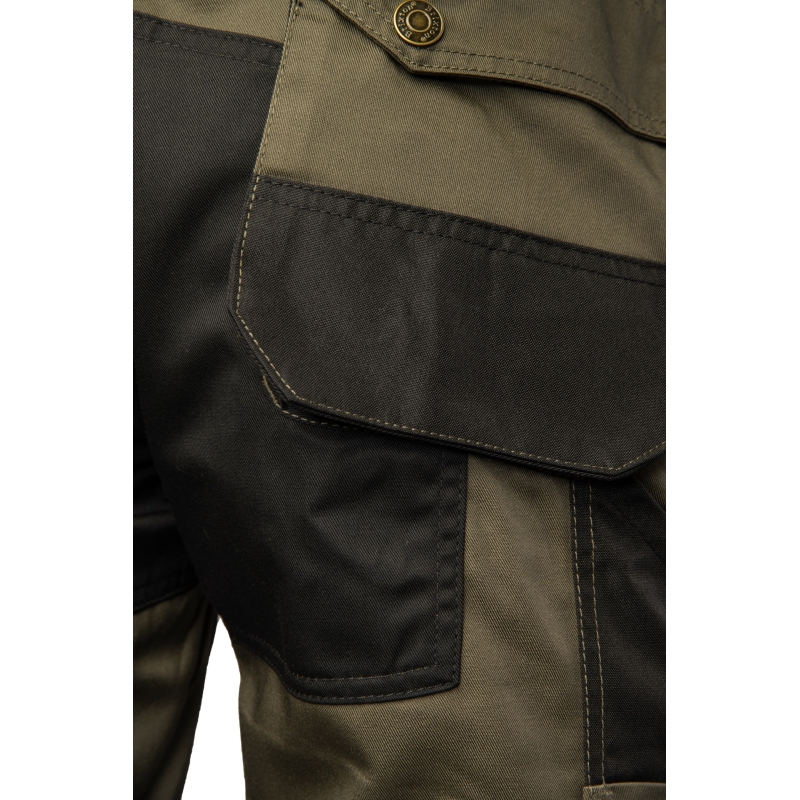 .Kieszenie: kieszeń na miarkę „metrówkę”, wzmocnione kieszenie boczne, kieszeń na komórkę, przestrzenne kieszenie, dwie kieszonki na długopisy, dwie kieszenie w tylnej części spodni, kieszeń na zamek