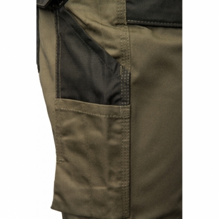 .Kieszenie: kieszeń na miarkę „metrówkę”, wzmocnione kieszenie boczne, kieszeń na komórkę, przestrzenne kieszenie, dwie kieszonki na długopisy, dwie kieszenie w tylnej części spodni, kieszeń na zamek