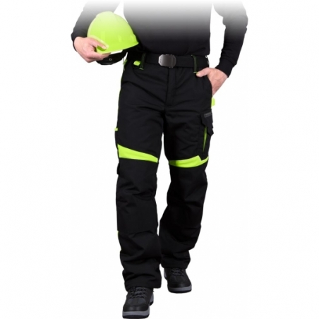 Spodnie ochronne ocieplane do pasa TANZO, tkane. - powłoka 65% poliester, 35% bawełna o gramaturze 270 g/m2 - podszewka 100% poliester typu tafta o gramaturze 60 g/m2 - wyściółka 100% poliester o gramaturze 150 g/m2 - wstawki z kontrastowego materiału 65% poliester, 35% bawełna o gramaturze 195 g/m2 - trzy boczne kieszenie, w tym jedna zapinana na suwak - dwie tylne kieszenie zapinane na rzep - kieszenie na nogawkach, w tym na telefon komórkowy - gumy wszyte w pasie dla regulacji tęgości, dzięki czemu spodnie lepiej dopasowują się do sylwetki - końcówka do przypięcia kluczy - pętelki umożliwiające doczepienie dodatkowych akcesoriów - na kolanach kieszenie na wkładki nakolannikowe - modne połączenie kolorów nadaje atrakcyjny wygląd