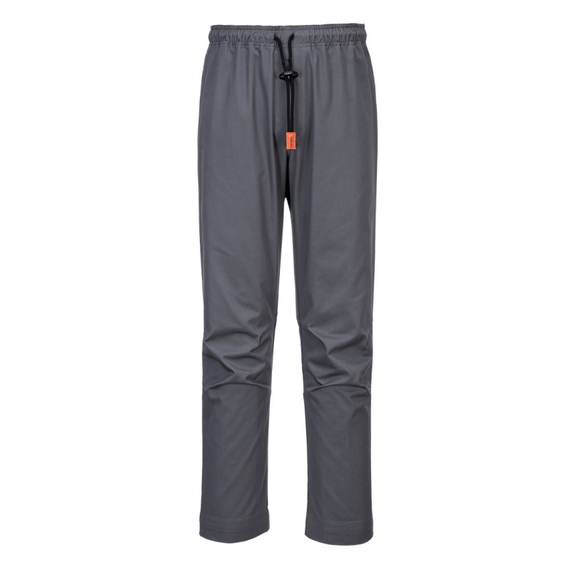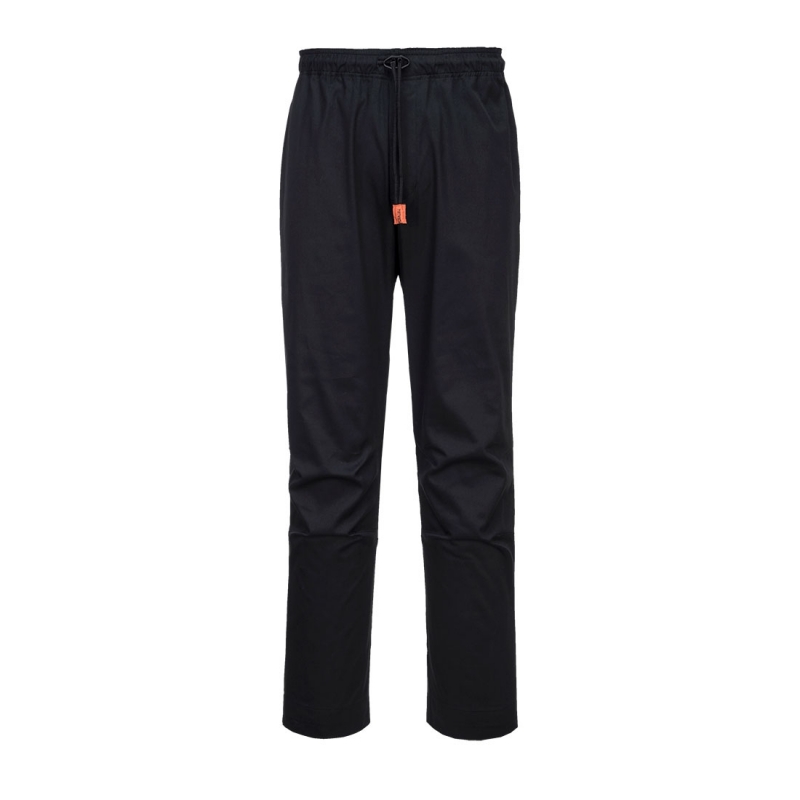 - Te lekkie spodnie posiadają powleczenie Texpel umożliwiające spływanie cieczy po tkaninie. Klin MeshAir Pro i tylna część kolan zapewniają maksymalną oddychalność w gorących pomieszczeniach kuchennych. Inne zalety to tylna kieszeń biodrowa w pełni elastyczny pas z sznurkiem do ściągania oraz ułożenie materiału na kolanach ułatwiające ruch i lepszą mobilność.