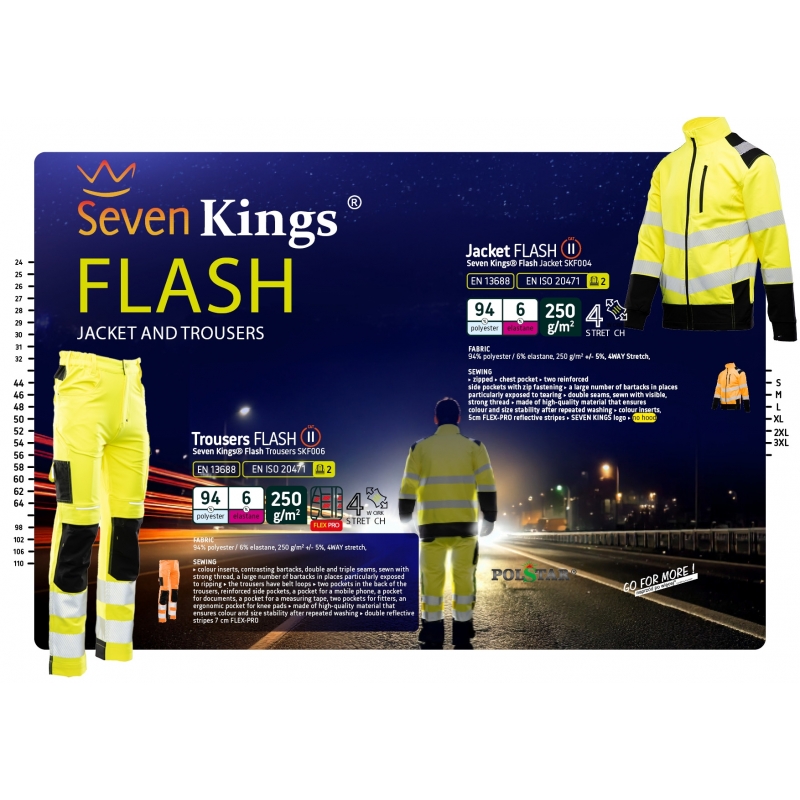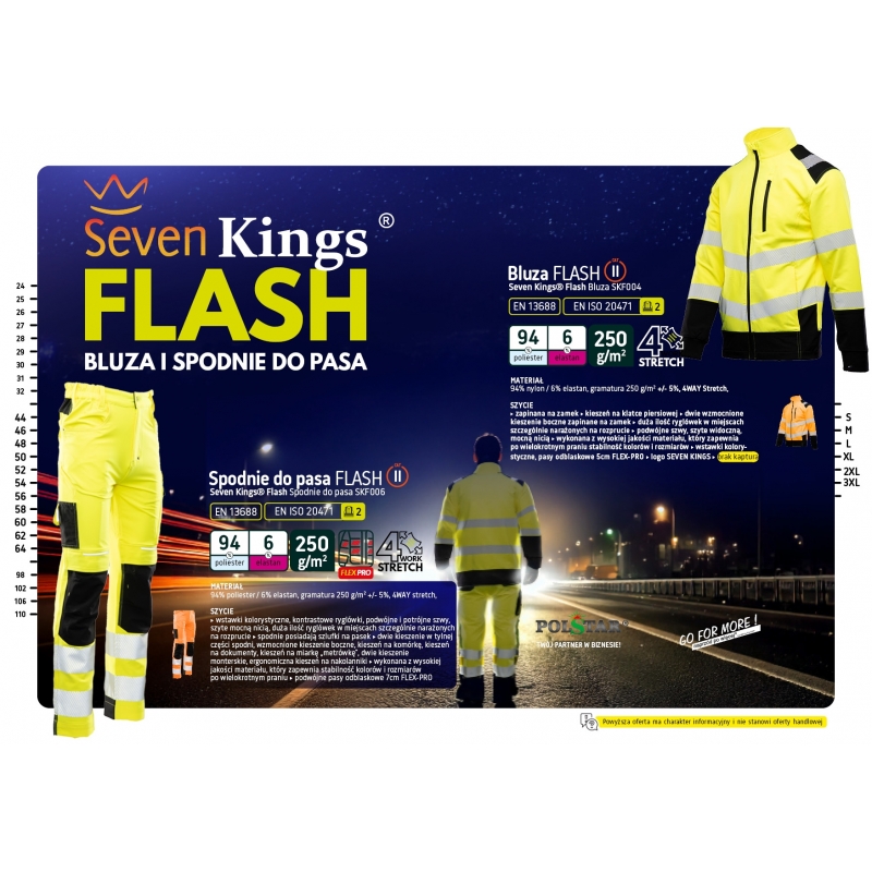 .Budowa/szycie: wstawki kolorystyczne, duża ilość ryglówek w miejscach szczególnie narażonych na rozprucie, logo SEVEN KINGS,