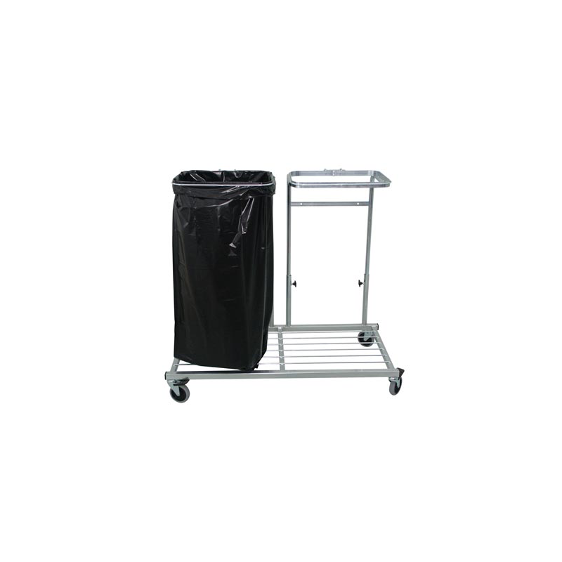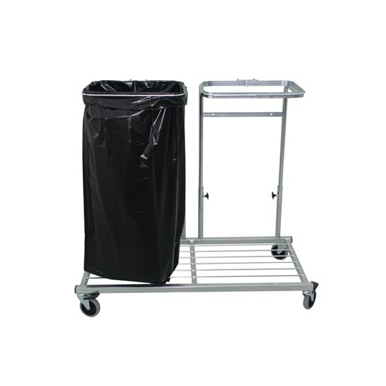 Mobilny stojak na worki (dwa uchwyty na worki) opracowany specjalnie dla wymagań przemysłu. Uchwyty można mocować na ścianie i wyposażyć w pokrywy.