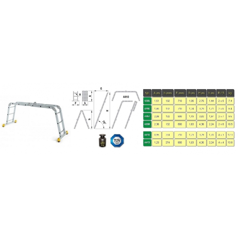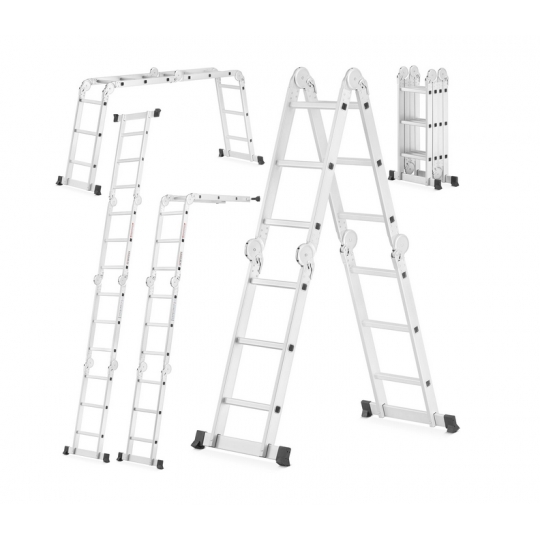 To solidna drabina, którą z łatwościa przewieziesz w bagażniku, zajmuje optymalnie niewiele miejsca wiec jest wygodna w przechowywaniu w każdym garażu , a nawet mieszkaniu. Zastosowanie w drabinie 6 ruchomych przegubów stalowych pozwala ustawiać drabinę aż w 7 różnych kombinacjach - to właśnie sprawia, że jest to najbardziej uniwersalna drabina na rynku.