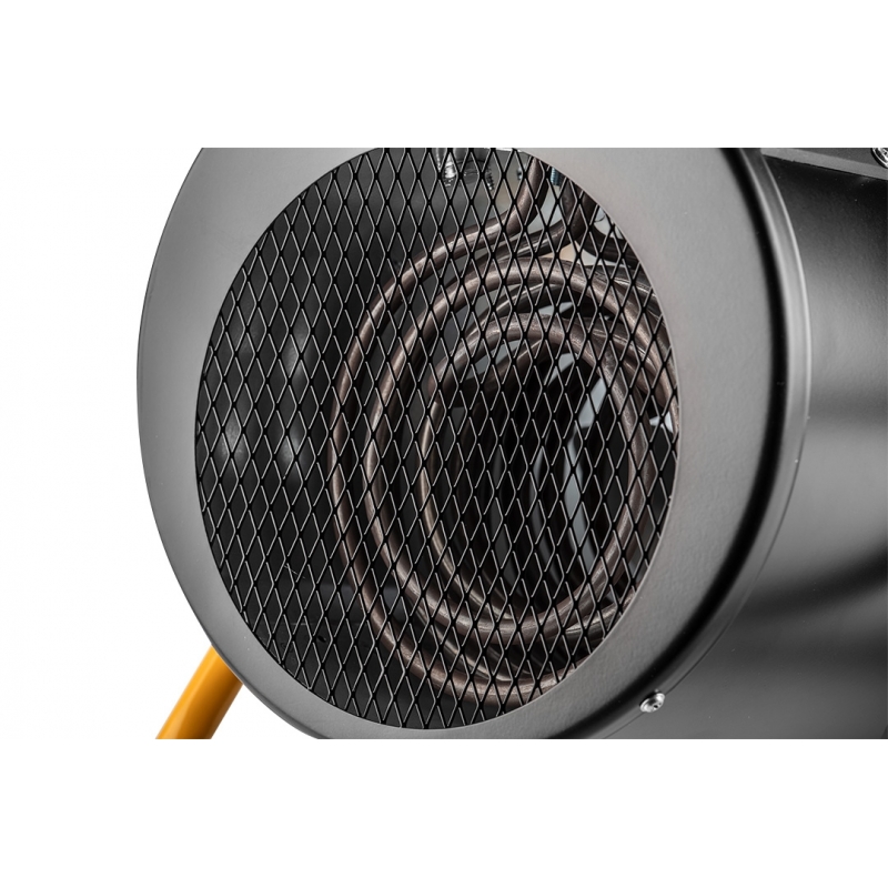 Nagrzewnica elektryczna 5kW przemysłowa, element grzewczy stal nierdzewna, regulowany termostat, ochrona przed przegrzaniem, z wentylatorem, regulowany kat ustawienia, izolowany uchwyt, IPX4 do użytku w wilgotnych obszarach, przepływ powietrza 366 m3/h