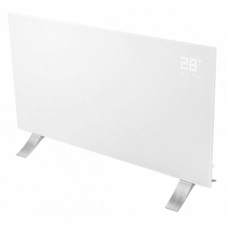 Grzejnik konwektorowy elektryczny 1000W, IP24, grzałka X-shape, tygodniowy programator, pilot, czujnik otwartego okna, czujnik przeciwzamarzaniowy, w zestawie montaż na ścianę i aluminiowe nogi, wymiary produktu: 515 x 450 x 105 mm, powierzchnia grzania: 8-10m2