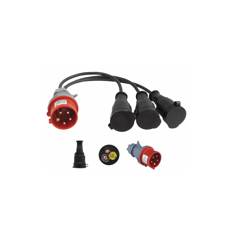 Wykonana z elastycznego przewodu w gumie(H05RR-F) 3x1,5mm², o długości całkowitej ok. 60 cm, oraz bardzo wytrzymałej wtyczki 32A oraz trzech gniazd z klapką 230V.