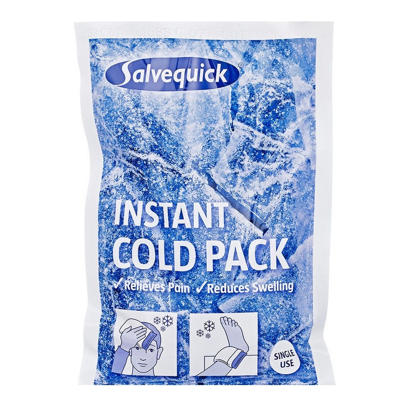 Zestaw chłodzący Salvequick Cold Pack działa jak zimny kompres i umożliwia natychmiastowe miejscowe schłodzenie ciała co przynosi ulgę w bólu i zmniejszenie obrzęku przy zwichnięciach i drobnych urazach. Czas rehabilitacji ulega skróceniu jeżeli miejsce obrażenia jest schłodzone natychmiast.