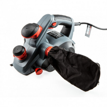 Strug 850W, głębokość strugania 0-3 mm, obroty 16500 min⁻¹, szerokość strugania 82 mm, ilość noży 2 szt, struganie wgłębne 0-12 mm, (LxH) 270 x 165 mm, masa 3.1 kg, akcesoria: worek na pył, klucz płaski, prowadnica równoległa oraz wspornik, prowadnica do strugania wgłębnego