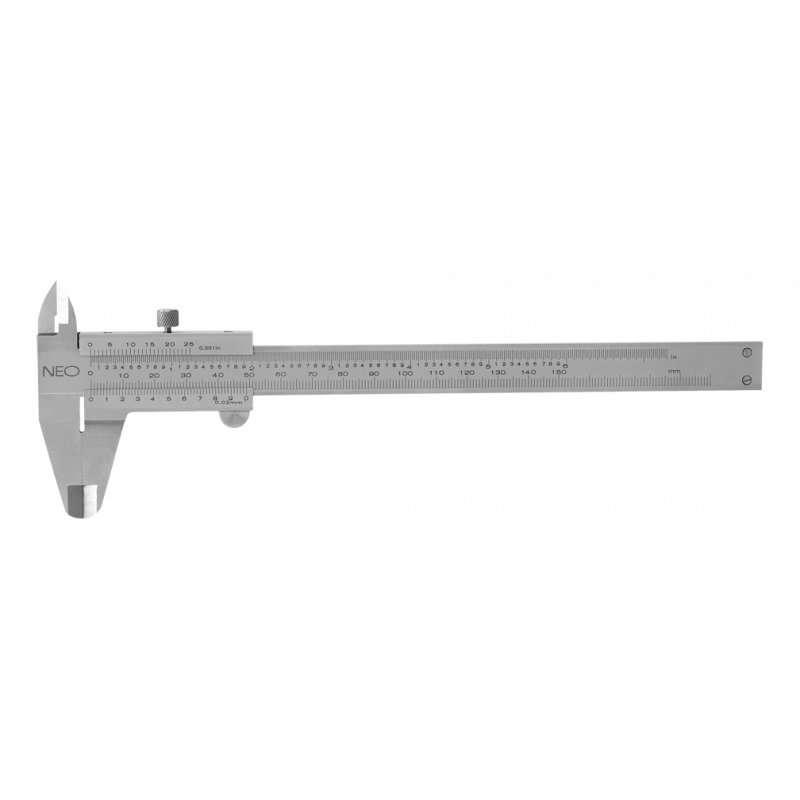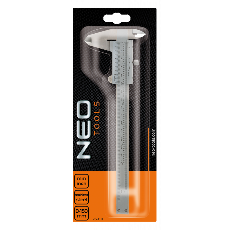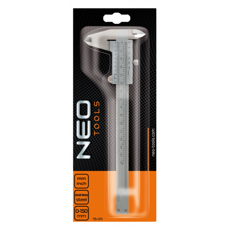 Suwmiarka 150 mm, stal nierdzewna, 4-funkcyjna, dokładność pomiaru ±0.02 mm, śruba zaciskowa, plastikowe pudełko
