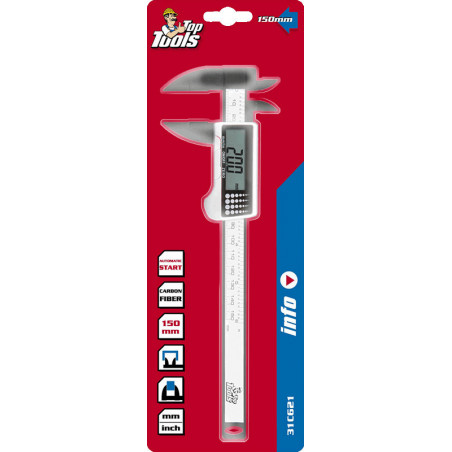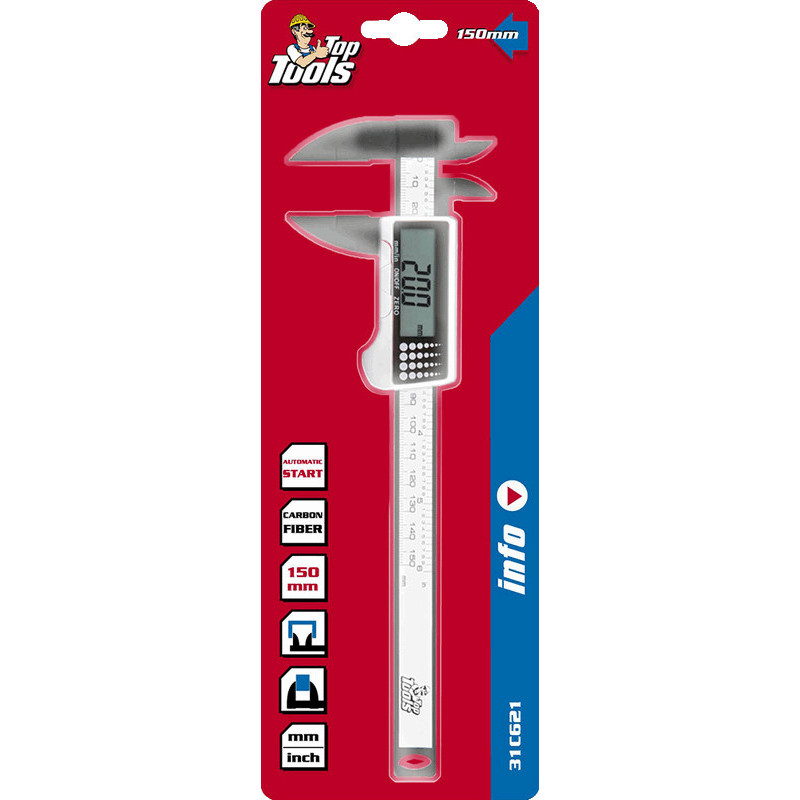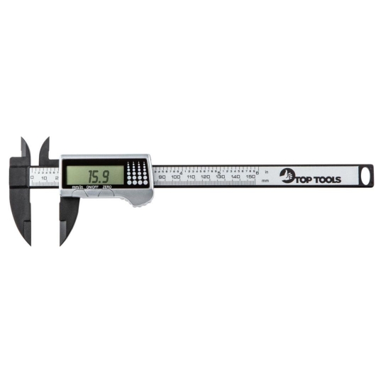 Suwmiarka cyfrowa 150 mm, kompozyt włókna węglowego, pomiar w milimetrach i calach, duży wyświetlacz, certyfikat CE
