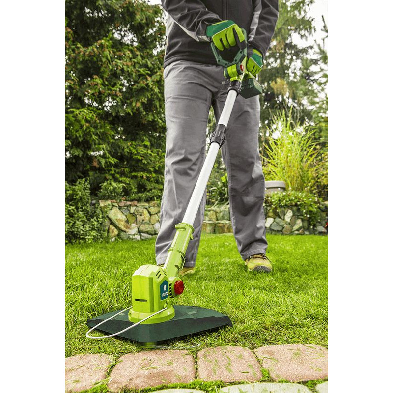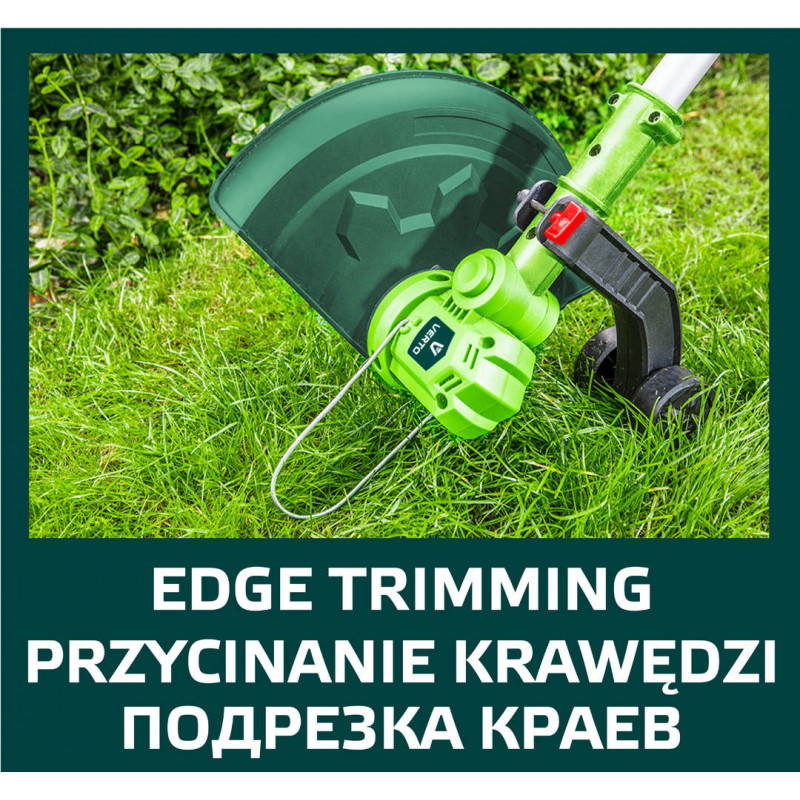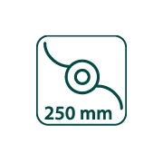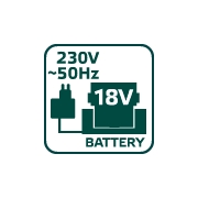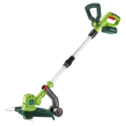 Podkaszarka elektryczna 18V, akumulator Li-Ion 1.3 Ah - 2 szt., obroty 8800 min⁻¹; szerokość koszenia 250 mm; masa 1.9 kg; maksymalna grubośc żyłki 1.5 mm, czas ładowania akumulatora 3-5 godz., klasa ochronności II