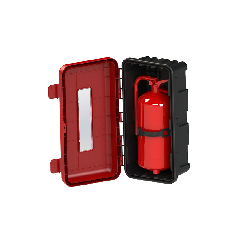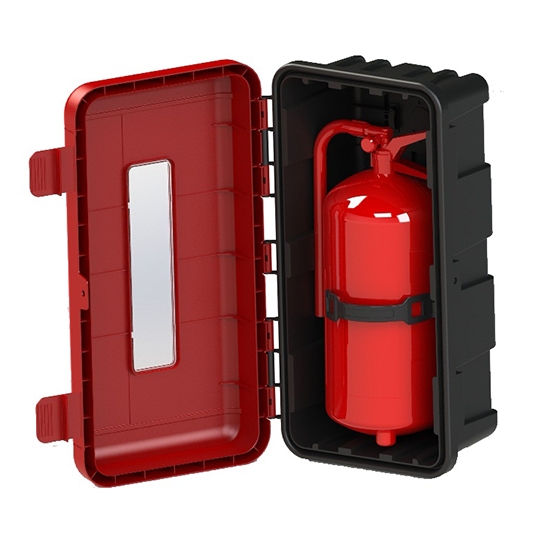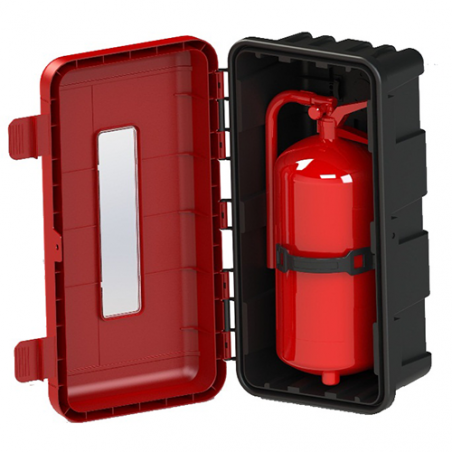 Szafka na gaśnice proszkową 6 kg / 9 kg wykonana z wysokoudarowego polietylenu odpornego na temperaturę. Przeznaczona do transportu ADR - stosowana do ciężarówek, maszyn drogowych, ciągnikach, kombajnach i innym maszynach. Nadaje się doskonale na stacje paliw i do magazynu. Skrzynia szczelna, lekka, wytrzymała, odporna na korozję, nie iskrząca, może być stosowana poziomo i pionowo, okienko wykonane z PCV.