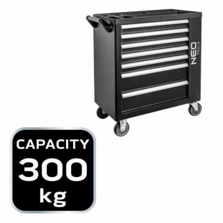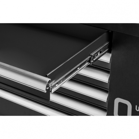 Szafka warsztatowa 7 szuflad, udźwig 300kg, wymiar 805*460*972mm, 7 szuflad, top ABS, prowadnice kulkowe, uchwyt, koła 5x1.25'' PVC 2 stałe 2 ruchome, mata eva 2mm w kazdej szufladzie, zamek centralny, zamek boczny, szafka boczna, póła boczna wyjmowana, regulowana, szuflady 100% otwierane, blokada szuflad