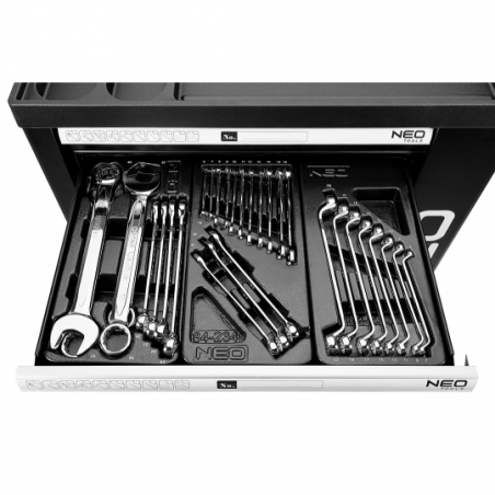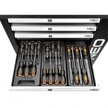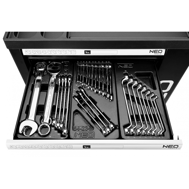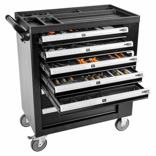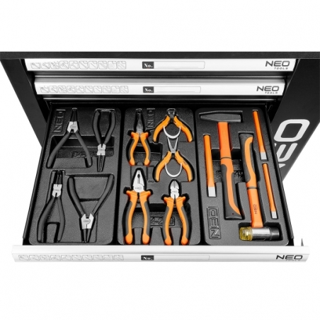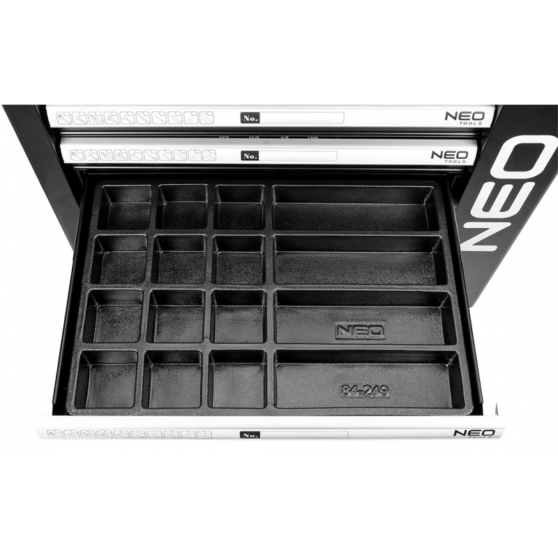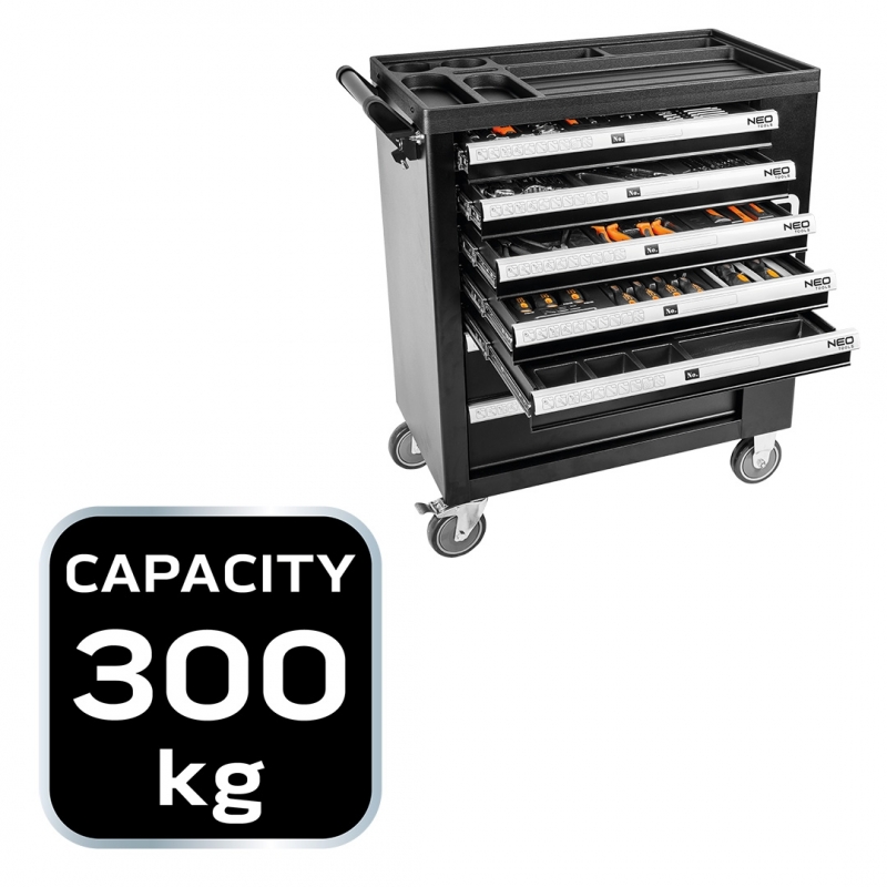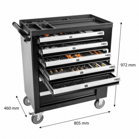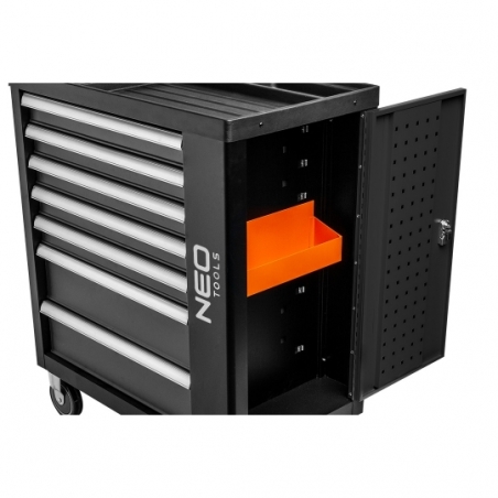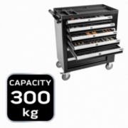 Szafka warsztatowa 7 szuflad, udźwig 300kg, wymiar 805*460*972mm, 7 szuflad, top ABS, prowadnice kulkowe, uchwyt, koła 5x1.25'' PVC 2 stałe 2 ruchome, mata eva 2mm w kazdej szufladzie, zamek centralny, zamek boczny, szafka boczna, póła boczna wyjmowana, regulowana, szuflady 100% otwierane, blokada szuflad, dodatkowe wyposażenie w produkty o nr ref. : 84-237, 84-238, 84-236, 84-233, 84-234, 84-235, 84-231, 84-232, 84-244, 84-230, 84-240, 84-242, 84-249, 84-230