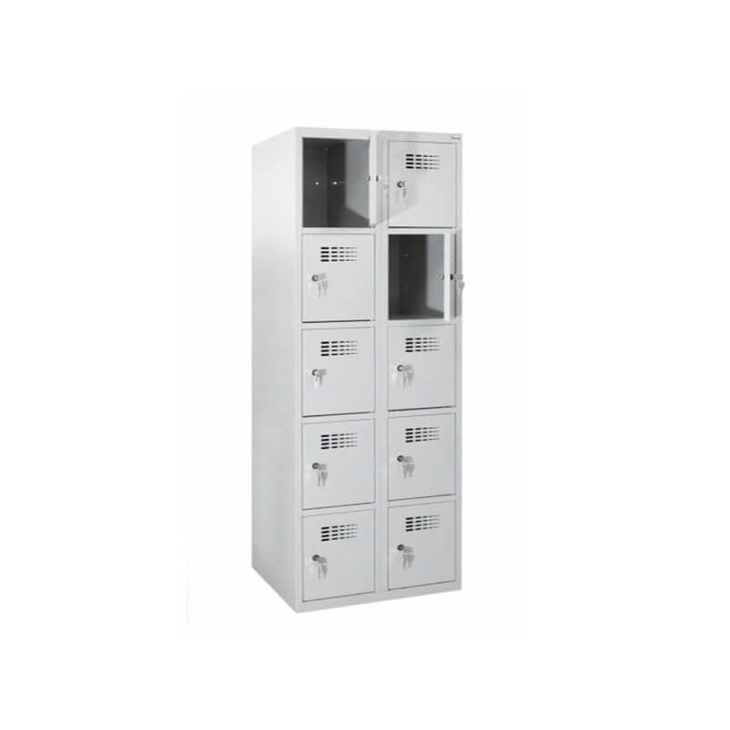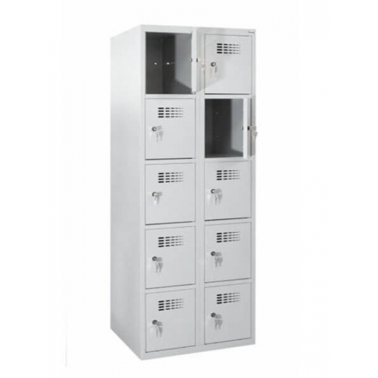 Szafa ze schowkami SUS 425 W to model dostosowany do przechowywania rzeczy osobistych oraz odzieży przez dziesięć osób. Dzięki zastosowaniu skrytek szafa jest funkcjonalna, a także pozwala na maksymalne wykorzystanie przestrzeni. Model SUS 425 W doskonale sprawdza się w niedużych pomieszczeniach socjalnych oraz szatniach szkolnych, przedszkolnych czy sportowych. Szafa ze schowkami SUS 425 W charakteryzuje się wytrzymałością oraz odpornością korozyjną, dzięki zastosowaniu wysokiej jakości materiałów i technologii wytwarzania. Szeroka gama kolorów, w jakich dostępny jest produkt, pozwala na łatwą aranżację wnętrza zgodnie ze stylistyką pomieszczenia.