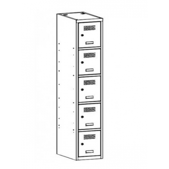 \n \n \nZgrzewana konstrukcja szafy ze schowkami SUS 415 W wykonana została z zamkniętych profili stalowych. Wszystkie elementy szafy stanowi blacha o grubości 0,5 mm malowana proszkowo. Technologia ta zapewnia wysoką odporność na uszkodzenia mechaniczne, a także dobre własności przeciwkorozyjne. Szafa wyposażona została w pięć schowków ustawionych pionowo w jednej kolumnie. Każdy ze schowków posiada plastikowy samoprzylepny wizytownik i zamykany jest przy pomocy zamka cylindrycznego z jednopunktowym ryglowaniem. Na drzwiach schowków wykonana została nowoczesna perforacja, dzięki której możliwy jest prawidłowy przepływ powietrza w szafie. \n \n