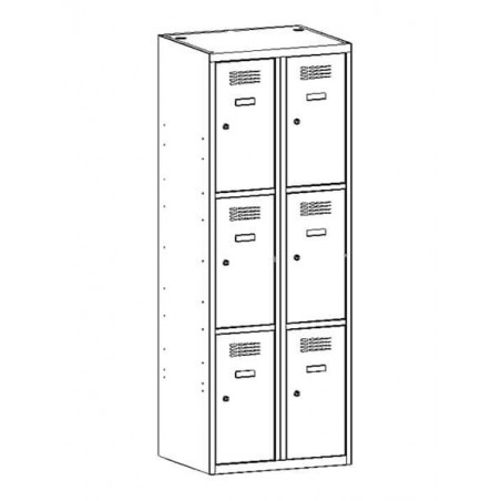 \nSzafa ze schowkami SUS 423 W posiada dwie kolumny po trzy skrytki, dzięki czemu oferuje sześć oddzielnych przedziałów na rzeczy osobiste. Wysokiej jakości materiały, z których wykonana została szafa SUS 423 W, zapewniają żywotność i wytrzymałość stelaża, zaś zmodyfikowana wersja konstrukcji wyposażona w dodatkowe wzmocnienia wpływa na sztywność i stabilność szafy. Funkcjonalność i uniwersalność szafa zyskuje dzięki możliwości zamontowania dodatkowego wyposażenia, takiego jak nóżki, cokół czy podstawę z ławką.