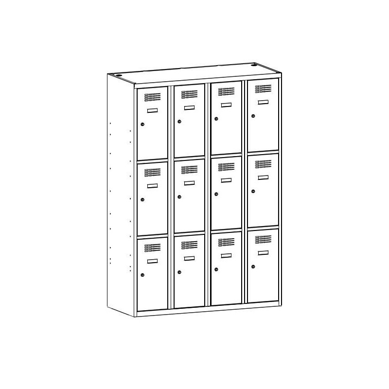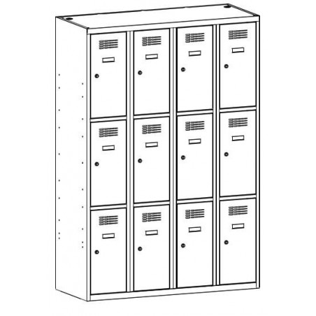 \n \n \nSzafa skrytkowa SUS 343 W wykonana została w całości ze sztywnej blachy stalowej o grubości 0,5 mm. Zgrzewana konstrukcja wykonana z profili zamkniętych gwarantuje wytrzymałość i stabilność. Wentylacja szafy odbywa się dzięki nowoczesnej perforacji wykonanej na drzwiach. Model wyposażony został w cztery kolumny z trzema schowkami w każdej z kolumn. Skrytki zamykane są przy pomocy zamków cylindrycznych o ryglowaniu w jednym punkcie. Każda z nich posiada plastikowy samoprzylepny wizytownik, który umożliwia opisanie przedziałów. Model SUS 343 W malowany jest w technologii proszkowej, dzięki czemu uzyskana powłoka jest przyczepna oraz wytrzymała na uszkodzenia mechaniczne. \n \n