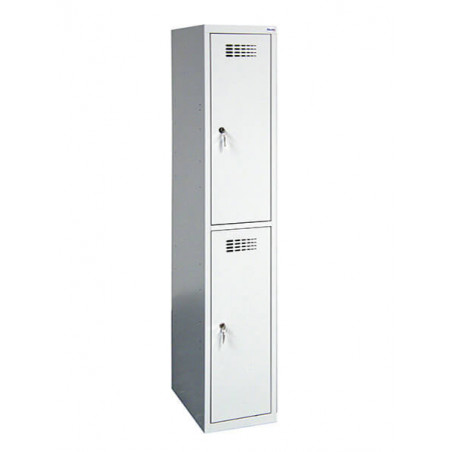 \n \n \nModel SUS 412 W to szafa skrytkowa jednokolumnowa z dwoma przedziałami. Jej zgrzewana konstrukcja wykonana została w całości z blachy o grubości 0,5 mm i wzmocniona została dodatkowo profilami zamkniętymi umieszczonymi w drzwiach, ścianach oraz wieńcach dolnym i środkowym. Nowoczesna perforacja o zastrzeżonym znakiem przemysłowym designie zapewnia prawidłową cyrkulację powietrza w szafie. \n \n \n \nKażdy z przedziałów zamykany jest na oddzielny zamek cylindryczny o jednopunktowym ryglowaniu. Wewnątrz przedziałów znajdują się drążki ubraniowe oraz haczyki, zaś po zewnętrznej stronie drzwi umieszczone zostały samoprzylepne wizytowniki, pozwalające na opisanie skrytek. Szafa SUS 412 W malowana jest w technologii proszkowej, która podnosi odporność korozyjną blachy oraz zapewnia wysoką przyczepność powłoki. \n \n