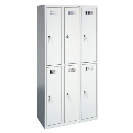 \nSzafa skrytkowa SUS 332 W posiada trzy kolumny z dwoma skrytkami w każdej, co zapewnia odpowiednią przestrzeń w każdej skrytce do przechowywania odzieży wierzchniej, torebki czy plecaka oraz innych rzeczy osobistych. Model SUS 332 W może być dodatkowo wyposażona w nóżki, cokół odgraniczające wieniec dolny od podłogi lub w podstawę z ławką wysuwaną albo stałą, która pozwala na komfortowe zmienienie odzieży czy butów.