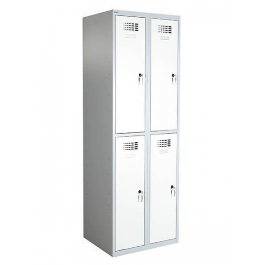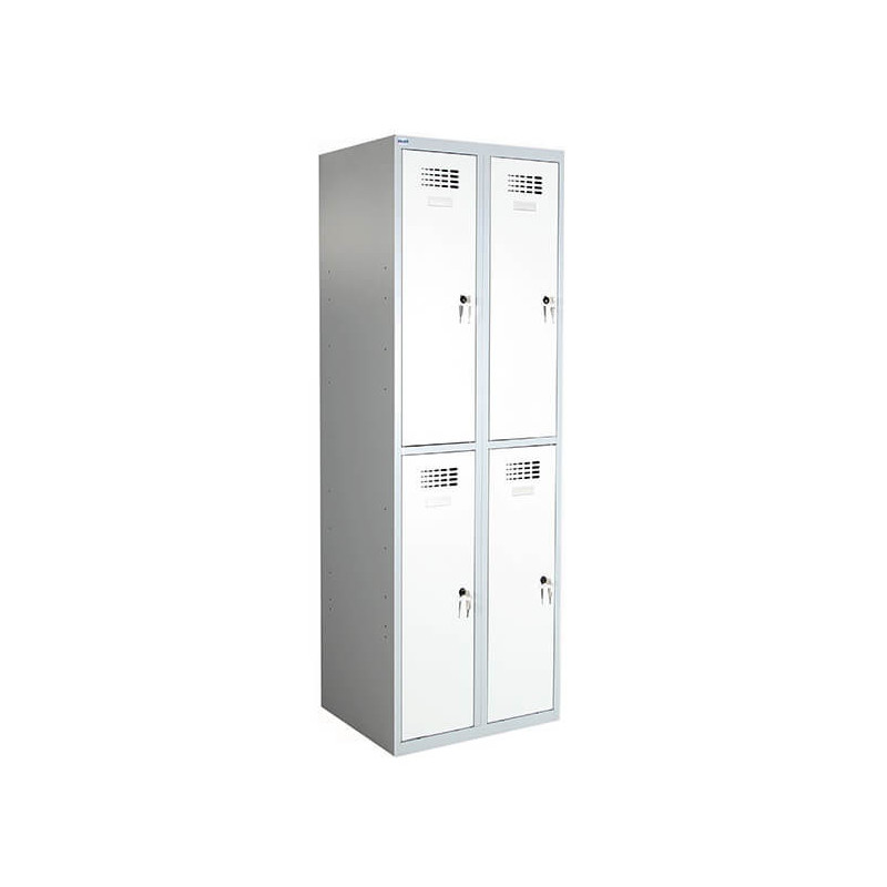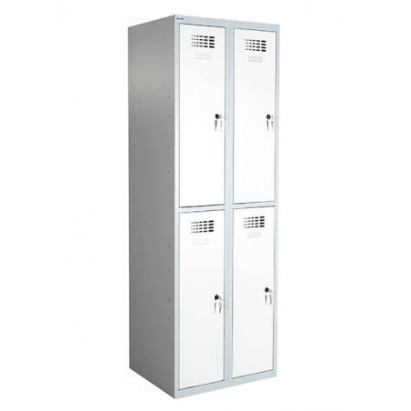 \n \n \nModel SUS 322 W to szafa z dwoma skrytkami w pionie rozmieszczonymi w dwóch kolumnach. Każda skrytka zamykana jest przy pomocy oddzielnego zamka ryglującego drzwi w jednym punkcie. Cała konstrukcja szafy wraz z drzwiami i pozostałymi elementami wykonana została z blachy stalowej o grubości 0,5 mm i posiada dodatkowe wzmocnienia w postaci profili zamkniętych, zamontowanych w drzwiach, ścianach oraz wieńcach dolnym i środkowym. \n \n \n \nSkrytki wyposażone zostały w drążki ubraniowe wraz z haczykami, zaś po zewnętrznej stronie drzwi przymocowane zostały samoprzylepne wizytowniki, umożliwiające opisanie skrytek. Ponadto szafa SUS 322 W posiada nowoczesną perforację wykonaną w drzwiach szafy, która pozwala na prawidłową wentylację wnętrza szafy. Szafa SUS 322 W malowana jest na kolory palety Ral w technologii proszkowej, która to zapewnia podwyższoną odporność korozyjną blachy. \n \n