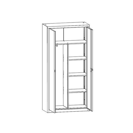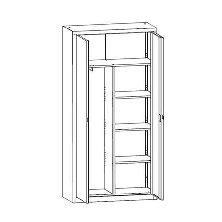 \n \n \nSzafa SBM 206 M to wysoka szafa dwudrzwiowa, która w całości wykonana została z blachy stalowej o grubości 0,7 mm. Wewnątrz szafy znajdują się dwa przedziały: aktowy oraz ubraniowy. Przedział aktowy wyposażony został w trzy przestawne co 25 mm półki (3 pozycje od środkowego położenia). W przedziale ubraniowym zamontowany został drążek na wieszaki. Ponadto w górnej części szafy wydzielona jest dodatkowa przestrzeń na dokumenty oraz segregatory. Szafa zamykana jest za pomocą zamka zabezpieczającego w dwóch punktach (u góry oraz na dole drzwi). \n \n