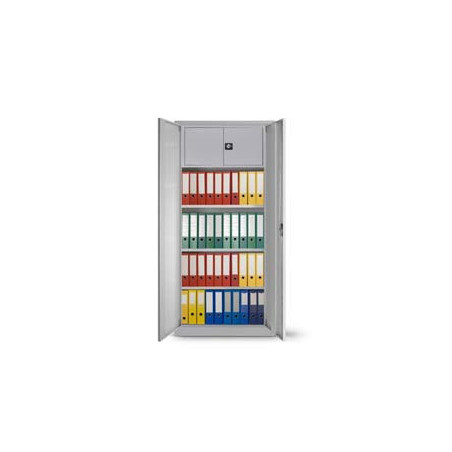 Wytrzymałe półki, zewnętrzne drzwi skrzydłowe i trwałość materiału gwarantują wygodne użytkowanie i zawsze estetyczną prezencję biura.