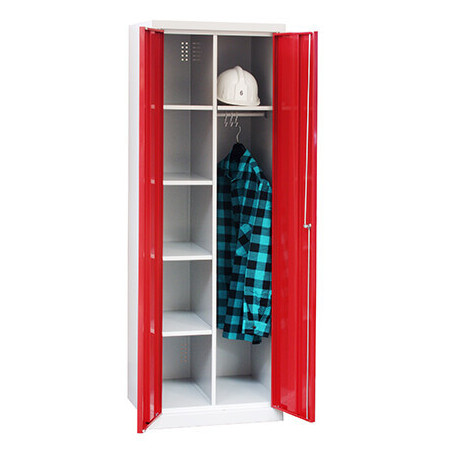 \nModel szafy gospodarczej SMD 61 posiada zarówno półki na mniejsze przedmioty, takie jak płyny czy ścierki jak i wysoki przedział ubraniowy, pozwalający na przechowywanie odzieży roboczej. Solidna metalowa konstrukcja i wysoka wytrzymałość to priorytetowe cechy brane pod uwagę podczas projektowania szafy. Szeroka gama kolorów, w jakich występuje szafa SMD 61 pozwala na estetyczną i pomysłową aranżację wnętrza.
